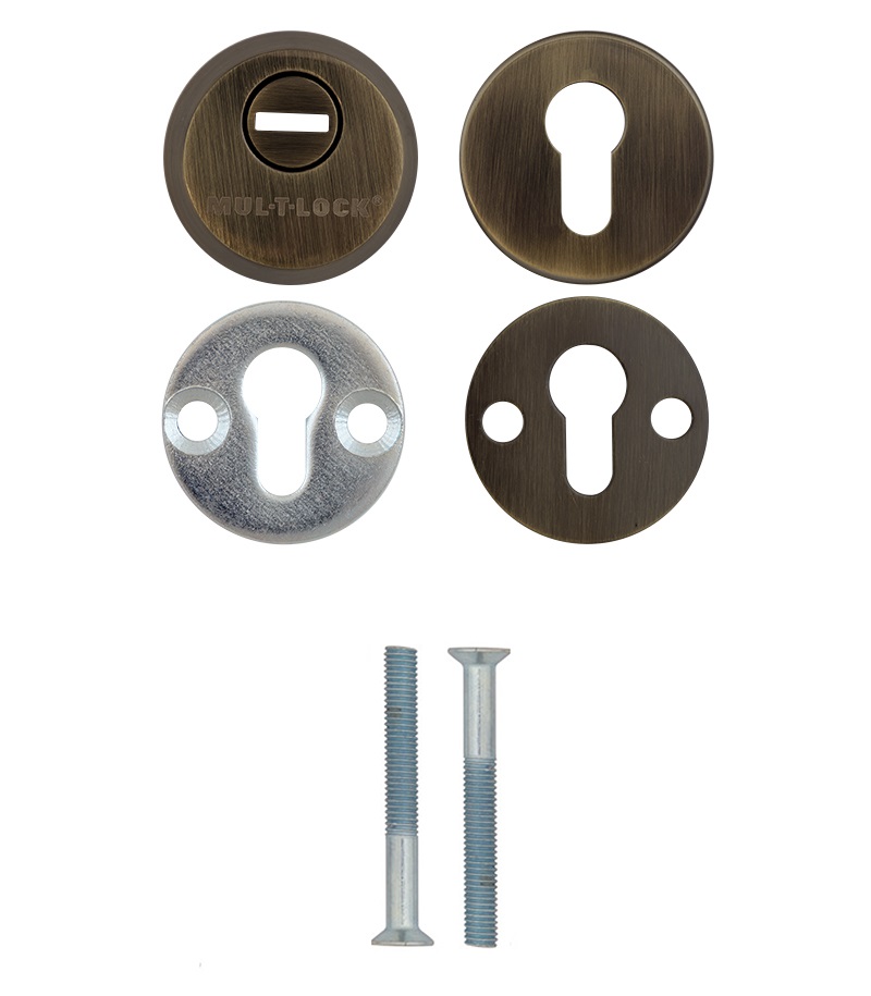 Протектор (або броненакладка) є обов'язковим аксесуаром вхідних дверей для захисту Вашої оселі. Оскільки їхньою найслабшою точкою є замок з серцевиною, то дуже часто злочинці намагаються потрапити всередину приміщення просто вириваючи їх. Для протидії такому методу взлому і потрібна броненакладка. Дана модель MUL-T-LOCK SL3 встановлюється на вхідні двері разом із замками і серцевинами стандарту EURO DIN. Це захисний протектор з 3-м класом зламостійкості. Виготовлений із гартованої сталі. Монтується накладним методом. Він простіший за врізний та не потребує висвердлювання отворів для посадки броненакладки. Проте в такому випадку вона не утворює із замком монолітну конструкцію, через що легше дістатись до стяжних гвинтів і зрізати їх. Чашка дозволяє трохи втопити протектор, але всерівно простір між ним і серцевиною залишається. Саме кріплення здійснюється стяжними гвинтами М8х75. Довжина гвинтів дозволяє ставити броненакладку на дверні полотна товщиною від 58 до 63 мм. Ці цифри вказані з урахуванням того, що гвинти закручені на всю довжину кріпильного отвору. Таким чином, протектор захищає серцевину від фізичних та силових методів злому — свердління та вибивання. Висота (або товщина) протектора складає 14,5 мм, діаметр - 55 мм. В бронзовому кольорі найкраще буде доповнювати двері з пильно-землистої палітри.
