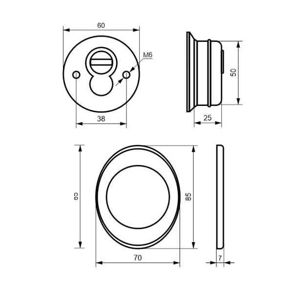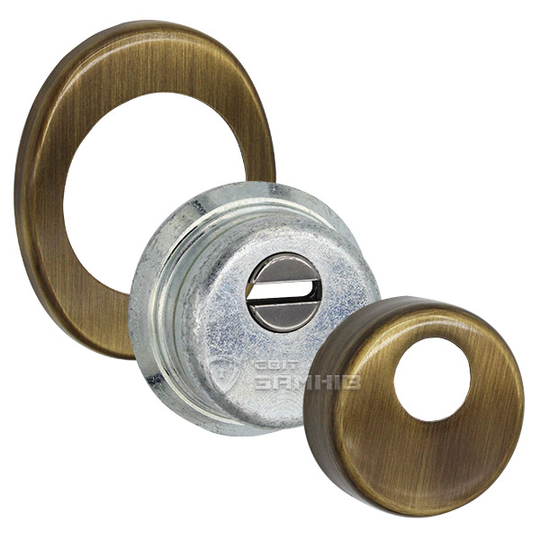 Для монтажу по діаметру протектора робиться отвір в дверному полотні. Кріпиться довкола серцевини стяжними гвинтами, створюючи монолітну конструкцію з нею. Таким чином, протектор захищає її разом із точкою кріплення в дверях від фізичних та силових методів злому — свердління, виламування та вибивання. Доступу до гвинтів кріплення немає і зірвати саму броненакладку надзвичайно складно. Висота (або товщина) її складає 25 мм, діаметр - 50 мм. Комплектується декоративною накладкою розміром 85х70 мм для надання дверному полотну більш охайного вигляду. В бронзовому кольорі найкраще буде доповнювати двері з пильно-землистої палітри.