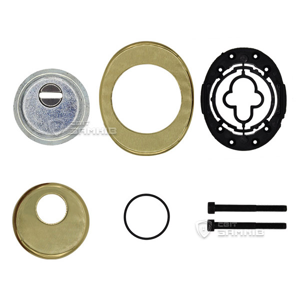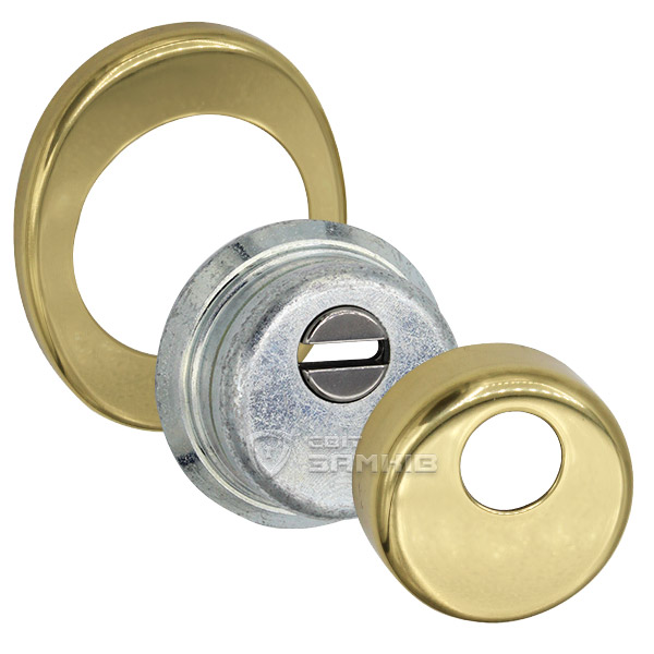 Для монтажу по діаметру протектора робиться отвір в дверному полотні. Кріпиться довкола серцевини стяжними гвинтами, створюючи монолітну конструкцію з нею. Таким чином, протектор захищає її разом із точкою кріплення в дверях від фізичних та силових методів злому — свердління, виламування та вибивання. Доступу до гвинтів кріплення немає і зірвати саму броненакладку надзвичайно складно. Висота (або товщина) її складає 25 мм, діаметр - 50 мм. Комплектується декоративною накладкою розміром 85х70 мм для надання дверному полотну більш охайного вигляду. В кольорі “полірована латунь” найкраще буде доповнювати двері світлих відтінків.