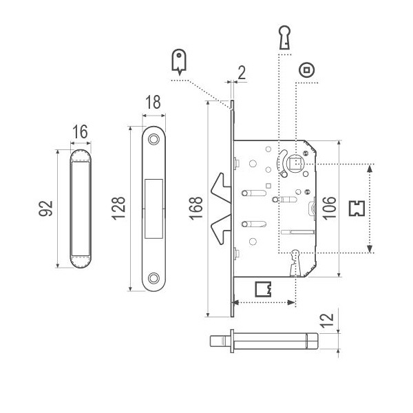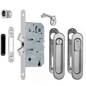 Опис Комплект замка для розсувної системи AGB Scivola-ТТ матовий хром