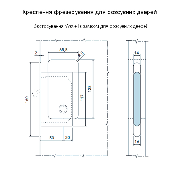 • Для розсувних дверей товщиною від 36 мм до 55 мм.