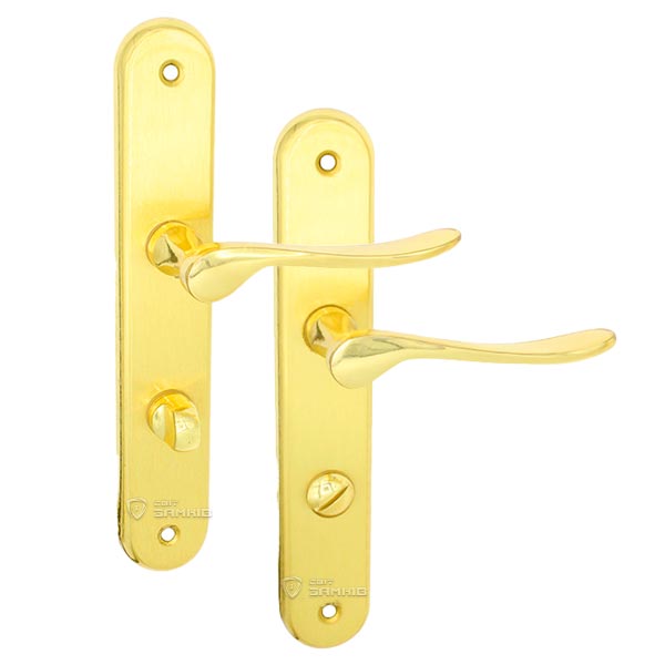 Польські ручки на планці – представляють собою практичну та надійну дверну фурнітуру за прийнятну ціну. Виготовляються із латуні, це міцний та приємний на дотик матеріал. Ручки з такого матеріалу стійкі до корозії та мають тривалий термін користування. Ця модель має тип планки під вороток, вона використовується для дерев’яних міжкімнатних дверей переважно у ванну та туалет. Яскравий колір – золото – добре підійде для будинку чи квартири в світло-золотих тонах. Покриття методом гальваніки забезпечить надійних захист кольорового відтінку від подряпин та стирання. Під час вибору варто врахувати такий критерій як міжосьова відстань, вона може бути різною і залежить від механізму замка. Наприклад, ці ручки підходять для замків з міжосьовою відстанню 72 мм. Процес кріплення планки до дверного полотна здійснюється за рахунок шурупів. Під час цього процесу важливо міцно зафіксувати ручки спеціальним гвинтом гужоном, це збільшить термін експлуатації та дозволить уникнути проблем з провисанням ручок.