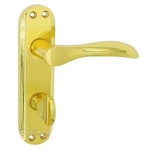Ручки на планці турецького виробництва. Ця модель представляє собою якісну дверну фурнітуру, яка ідеально доповнить міжкімнатне дверне полотно. Тип планки під вороток дозволяє встановлювати такі ручки на двері у ванну або туалет, хоча за бажанням вони можуть використовуватись, наприклад, на дверях в кухню. Латунний матеріал характеризується високим рівнем міцності та надійності. Ручки з такого матеріалу приємні на дотик і стійкі до корозії. Коротка планка компактно виглядає на дверях і не буде привертати до себе зайву увагу. Зовнішній вигляд захищений спеціальним гальванічним покриттям, яке гарантує стійкість кольорового відтінку до стирання та подряпин протягом 120 місяців. Яскравий колір – золото – добре підійде для будинку чи квартири в світло-золотих тонах. Дизайн в стилі модерн чудово доповнить дверне полотно з плавними лініями та гармонійно поєднається з інтер’єром без гострих кутів. Планка кріпиться до дверей за рахунок шурупів. Під час монтажу важливо міцно зафіксувати ручки гужоном, це спеціальний гвинт, який збільшить довговічність та дозволить уникнути проблем з їх провисанням чи розхитуванням.