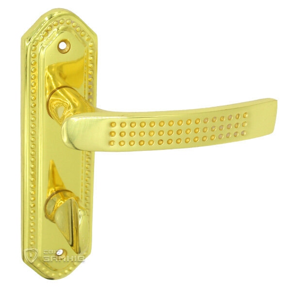 Ручки на планці турецького виробництва. Ця модель представляє собою якісну дверну фурнітуру, яка ідеально доповнить міжкімнатне дверне полотно. Тип планки під вороток дозволяє встановлювати такі ручки на двері у ванну або туалет, хоча за бажанням вони можуть використовуватись, наприклад, на дверях в кухню. Латунний матеріал характеризується високим рівнем міцності та надійності. Ручки з такого матеріалу приємні на дотик і стійкі до корозії. Коротка планка компактно виглядає на дверях і не буде привертати до себе зайву увагу. Зовнішній вигляд захищений спеціальним гальванічним покриттям, яке гарантує стійкість кольорового відтінку до стирання та подряпин протягом 120 місяців. Яскравий колір – золото – добре підійде для будинку чи квартири в світло-золотих тонах. Вишуканий класичний дизайн ідеальний вибір для дверного полотна, яке оздоблене різноманітними орнаментами або візерунками. Планка кріпиться до дверей за рахунок шурупів. Під час монтажу важливо міцно зафіксувати ручки гужоном, це спеціальний гвинт, який збільшить довговічність та дозволить уникнути проблем з їх провисанням чи розхитуванням.
