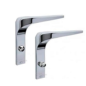 Креативні ручки на планці грецької торгової марки CONVEX. Дана модель представляє собою поєднання неймовірного сучасного дизайну та високої якості. Виготовляються із цинкового сплаву, це міцний та надійний матеріал, такі ручки не бояться корозії і їх не так легко зламати. Нажимна частина є прямим продовженням планки і розташовується на її вершині, завдяки чому ручки мають дуже охайний вигляд на дверному полотні. Ця модель має тип планки під вороток, вона використовується на дерев’яних міжкімнатних дверях переважно у ванну або туалет. Покриття наноситься методом гальваніки, що забезпечить стійкість кольорового відтінку до стирання та відшаровування протягом 60 місяців. Популярний колір – хром – чудово підійде для інтер’єру з яскравими світлими відтінками. Щоб вдало підібрати ручку на планці важливо звернути увагу на такий критерій як міжосьова відстань, вона буває різною і залежить від механізму замка. Ця модель підходить лише для механізмів замка з міжосьовою відстанню 96 мм. Незвичайний дизайн ручки ідеально підкреслить дверне полотно та наповнить інтер’єр сучасними деталями.