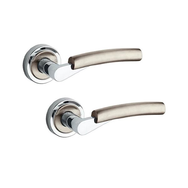 Італійські ручки на розеті популярної торгової марки FIMET. Найкращий вибір для міжкімнатних дверей. Виготовленні з високоякісного латунного сплаву за традиційними італійськими технологіями виробництва. Нажимна частина ручки приємно лягає в руку та зручна у використанні. Завдяки спеціальній двозавитковій пружині ручка не буде провисати. Багатошарове гальванічне покриття забезпечить стійкість кольорового відтінку до стирання та подряпин. Популярний колір хром/матовий нікель чудово буде виглядати в приміщені чи кімнаті з світлими деталями. Дизайн в стилі модерн підкреслить дверні полотна з плавними лініями.