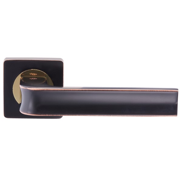 Ручка французької торгової марки GAVROCHE – це поєднання сучасного дизайну та якості за прийнятну ціну. Дана модель виготовлена із алюмінієвого сплаву. Кольоровий відтінок наноситься спеціальним методом – гальваніки. Це гарантує термін служби покриття протягом 36 місяців. Зручна форма нажимної частини зробить користування приємним. Сучасна модель ручки на квадратній розеті довершить дверне полотно з прямими лініями. В даній моделі цікаве поєднання кольорів - чорний із золотою патиною. Золота патина, що нанесена на грані, додає ручці вінтажності. Рекомендуємо встановлювати на полотна в кольорі венге, дуб, золотий дуб та інші коричневі відтінки. В ручках такого типу не видно отворів для кріплення, вони прикриваються зовнішньою кришкою розети. Ручка просто і легко монтується. Залежно від встановленого замка та товщини дверей, ручку можна зафіксувати на стяжні гвинти або саморізи.