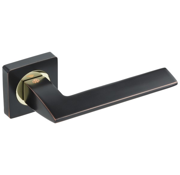 Ручка французької торгової марки GAVROCHE – це поєднання сучасного дизайну та якості за прийнятну ціну. Дана модель виготовлена із алюмінієвого сплаву. Кольоровий відтінок наноситься спеціальним методом – гальваніки. Це гарантує термін служби покриття протягом 36 місяців. Зручна форма нажимної частини зробить користування приємним. Сучасна модель ручки на квадратній розеті довершить дверне полотно з прямими лініями. В даній моделі цікаве поєднання кольорів - чорний із золотою патиною. Золота патина, що нанесена на грані, додає ручці вінтажності. Рекомендуємо встановлювати на полотна в кольорі венге, дуб, золотий дуб та інші коричневі відтінки. В ручках такого типу не видно отворів для кріплення, вони прикриваються зовнішньою кришкою розети. Ручка просто і легко монтується. Залежно від встановленого замка та товщини дверей, ручку можна зафіксувати на стяжні гвинти або саморізи.