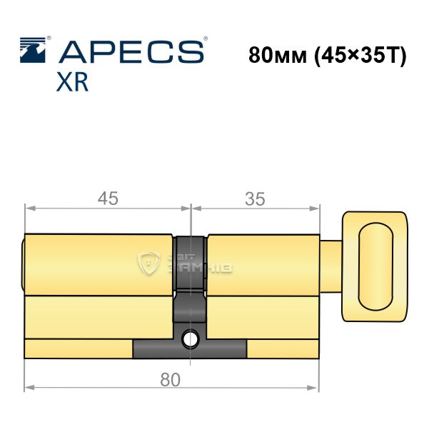 Купити циліндр APECS XR 80T (45*35T) латунь матова в роздріб і гуртом можна на нашому сайті.