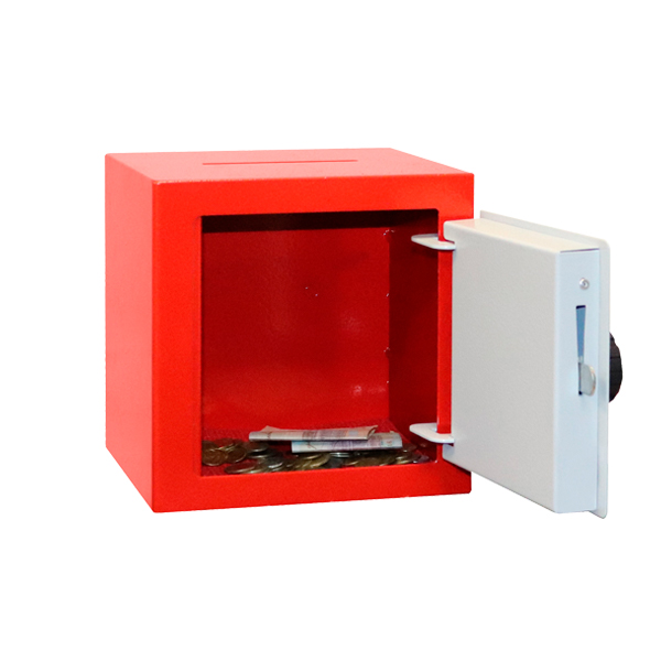 Корпус і двері сейфа виготовлені із металу завтовшки 1,5 і 2 мм відповідно. Завдяки яскравому червоному кольору фарбування, сейф легко доповнить будь-який дизайн дитячої кімнати. У конструкції також передбачено приховані отвори для надійного кріплення до меблів.