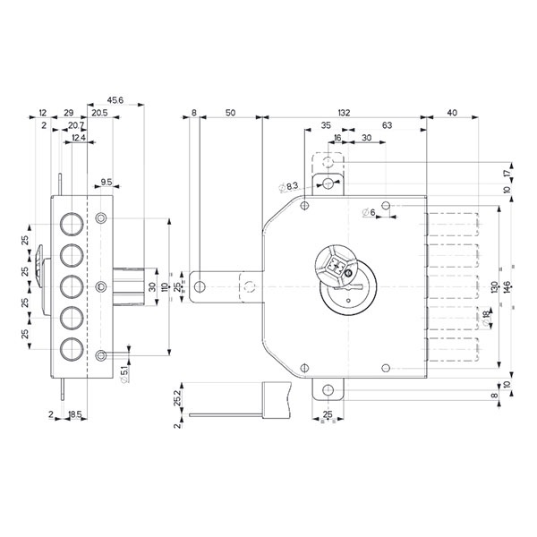 Дана модель призначена для дверей ПРАВОГО відкривання. Замок керується сувальдним механізмом. Він приводить в дію 5 круглих стальних ригелів діаметром 18 мм. Повний вихід ригелів на 40 мм відбувається за 4 півоберта ключа. Секретність замка становить в 144 000 можливих комбінацій. Це робить можливість підбору ключа малоймовірним. Зворотня планка входить до комплекту.