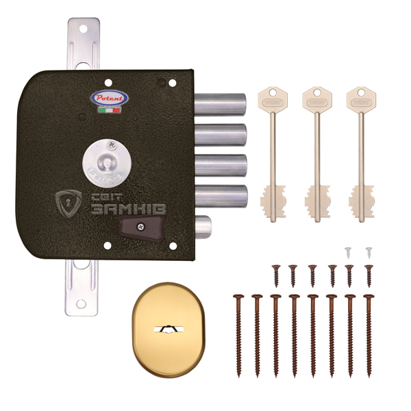 POTENT 930 – це 4-ригельний італійський замок. Встановлюється НАКЛАДНИМ способом на дверне полотно. Використовується на вхідних дерев’яних та металевих дверях квартири чи будинку. Також його часто обирають для монтажу в гаражах чи складських приміщеннях, де встановити врізний замок немає можливості або це не доцільно.