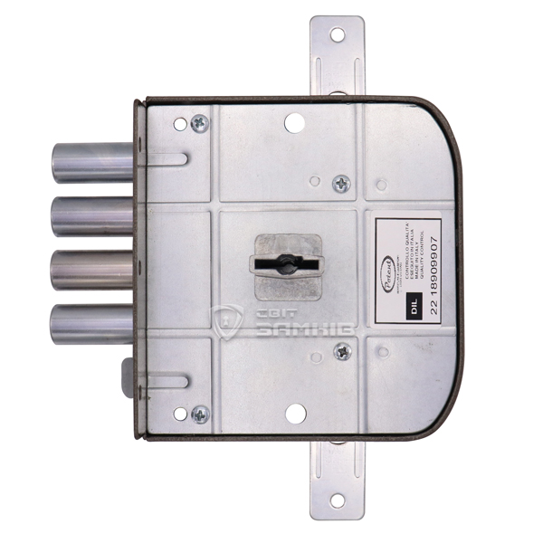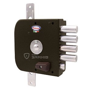 Дана модель призначена для дверей ЛІВОГО відкривання. Замок керується сувальдним механізмом. Він приводить в дію 5 круглих стальних ригелів діаметром 18 мм та додаткові провушини, до яких можна під’єднати тяги і девіатори. Завдяки цьому закривання відбувається в 3 сторони. Повний вихід ригелів на 32 мм відбувається за 4 оборота ключа. Завдяки 6-м підпружиненим сувальдам досягається секретність замка в 50 000 можливих комбінацій. Це робить можливість підбору ключа малоймовірним. Додатково також присутня заскочка (язичок). Вона керується засувом лише зсередини приміщення. Зворотня планка входить в комплект.