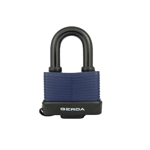 Навісні замки польського виробництва GERDA KSM 45A MODUS AQUA. Корпус та дужка виготовлені із гартованої сталі. До того ж замок знаходиться в гумовому чохлі, який повністю захищає його від корозії, вологи, перепаду температур та різних погодних умов. Для підвищення надійності, дужка додатково фіксується з двох сторін. Навколо дужки знаходяться гумові кільця, які не дають пилу та бруду потрапити у середину замка. Натисканням на дужку замка його можна закрити без використання ключа. Для захисту серцевини є гумова заглушка. Ця серія замків призначена для використання на вулиці та в приміщеннях з підвищеною вологою.