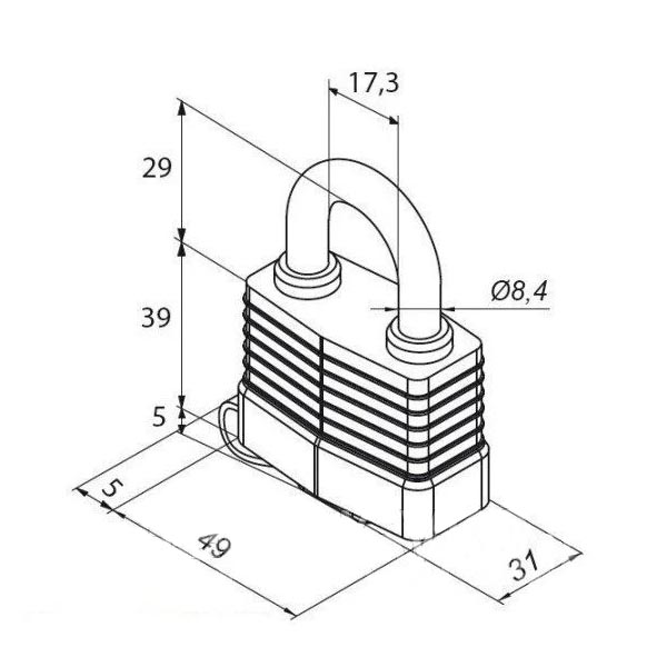 Опис Замок навісний GERDA KSM 45A MODUS AQUA (3 ключа)
