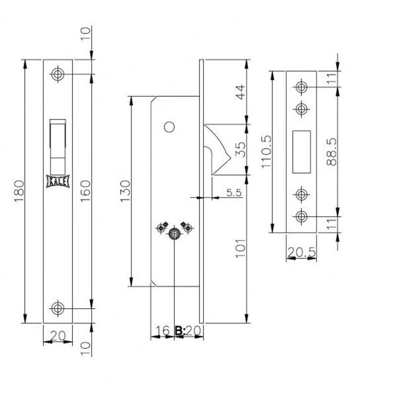 Опис Механізм замка для розсувної системи KALE 201F (BS20мм) нікель