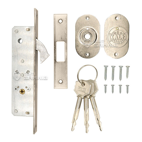KALE 201F – це врізний замок, який встановлюється на розсувні дерев'яні та металеві двері. Особливістю цього замка є гакоподібний ригель, який виготовлений із цинкового сплаву. Його повний вихід складає 5,5 мм. При зачиненні він надійно фіксується в зворотній планці. Управління замком здійснюється хрестовидним ключем.