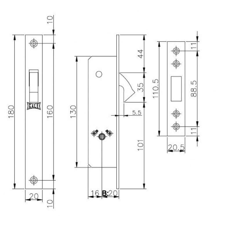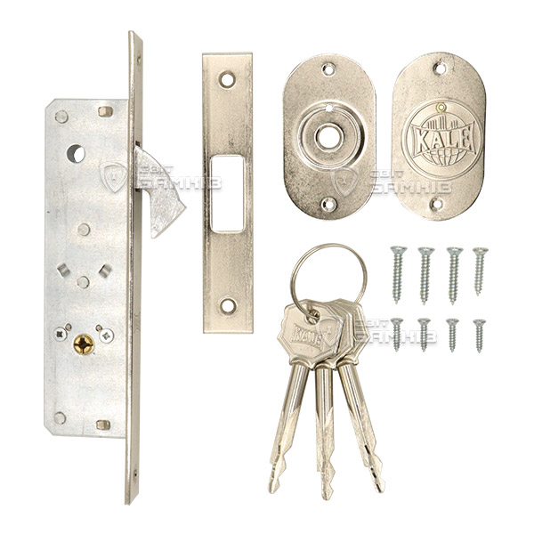 Дверна фурнітура турецької ТМ KALE є однією з найкращих по співвідношенню ціна/якість. Дана модель - це врізний замок, який встановлюється на розсувні дерев'яні та металеві двері. Особливістю цього замка є гакоподібний ригель, який виготовлений із цинкового сплаву. Його повний вихід складає 5,5 мм. При зачиненні він надійно фіксується в зворотній планці. Управління замком здійснюється хрестовидним ключем.