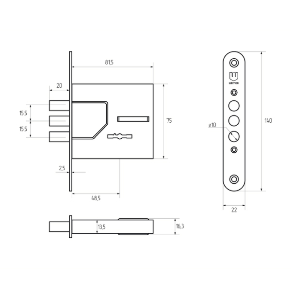 • Розміри замка –  81,5х75х13,5 мм.