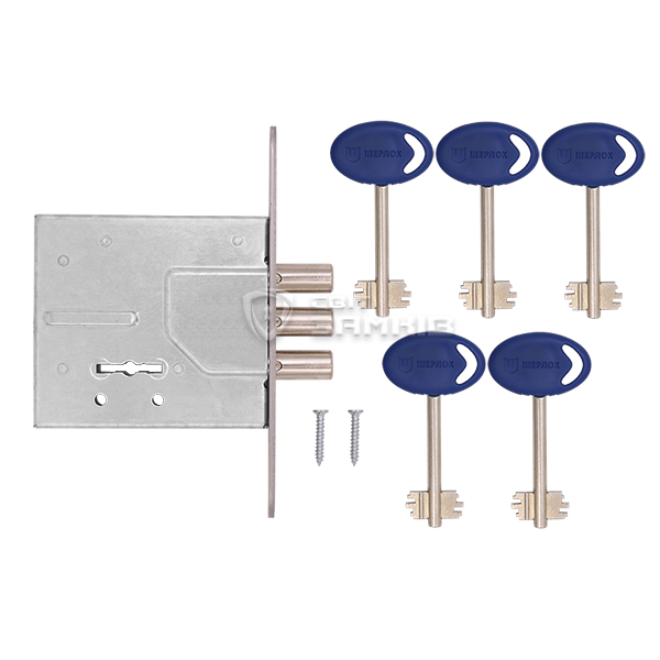 Закривання здійснюється 3-ма ригелями зі сталі діаметром 10 мм. Вони надійно фіксують двері, забезпечуючи достатній рівень безпеки. Повний вихід становить 20 мм. Даний замок ідеально підходить для встановлення в якості додаткового замка в металеві або дерев’яні двері квартир, будинків, гаражів чи комерційних приміщень. В даній версії в комплектації 5 ключів.