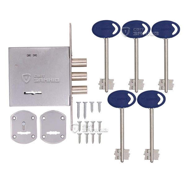 Закривання здійснюється 3-ма ригелями зі сталі діаметром 12 мм. Вони надійно фіксують двері, забезпечуючи достатній рівень безпеки. Повний вихід становить 20 мм. Даний замок ідеально підходить для встановлення в якості додаткового замка в металеві або дерев’яні двері квартир, будинків, гаражів чи комерційних приміщень. В даній версії в комплектації 5 ключів.