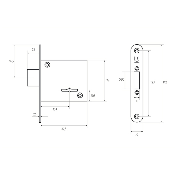 Механізм замка HORST HR-06S (BS66,5*42мм) правий