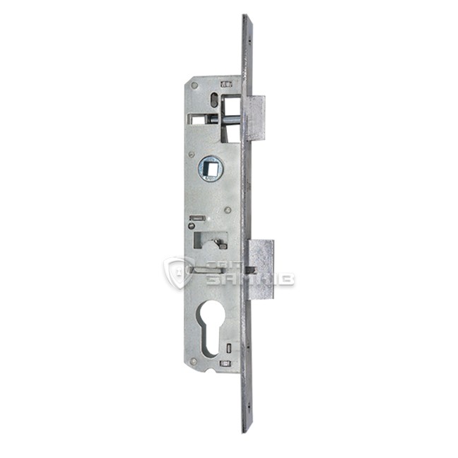 Компактний замок, що призначений для встановлення на алюмінієві двері офісних приміщень, хвіртки приватних будинків, або не масивні металеві двері складських приміщень. На замок встановлюється серцевина, яка запирає дверне полотно. Як правило до даного механізму підбирають ручку на планці з міжосьовою відстанню 85 мм, або ручку на овальній вузькій розеті.