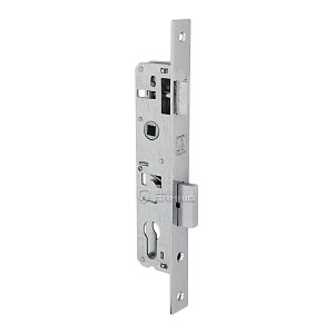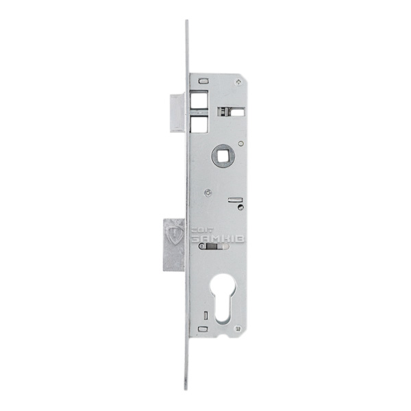 Компактний замок, що призначений для встановлення на алюмінієві двері офісних приміщень, хвіртки приватних будинків, або не масивні металеві двері складських приміщень. На замок встановлюється серцевина, яка запирає дверне полотно. Як правило до даного механізму підбирають ручку на планці з міжосьовою відстанню 85 мм, або ручку на овальній вузькій розеті.