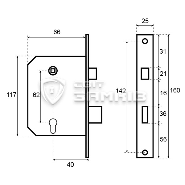 Механізм замка HORST HR-06S (BS66,5*42мм) правий