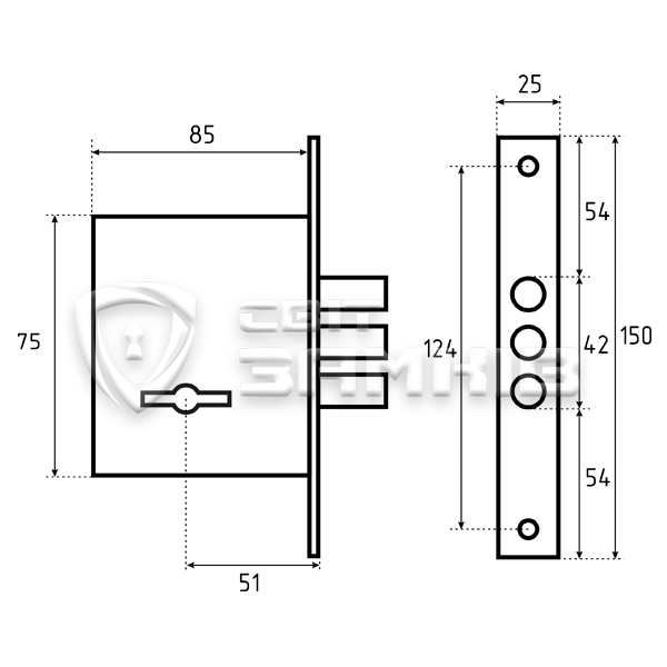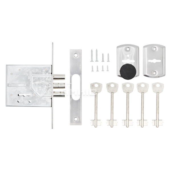 Додатковий замок, призначений для встановлення у вхідні двері. Простий механізм дає можливість врізати замок як в ліві так і в праві двері. Управління дверима здійснюється поворотом сувальдного ключа, при цьому ригелі виходять на 22 мм і надійно фіксують двері, забезпечуючи достатній рівень безпеки.