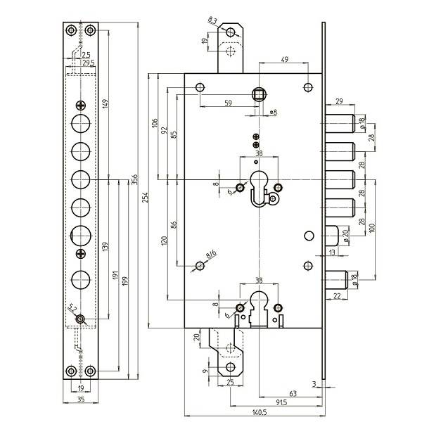 • Язичок і ригелі виготовлені із сталі з гальванічним покриттям – стійкі до корозії.