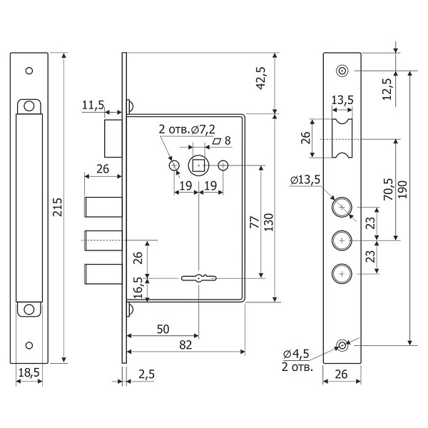 • Вихід ригелів - 26 мм.