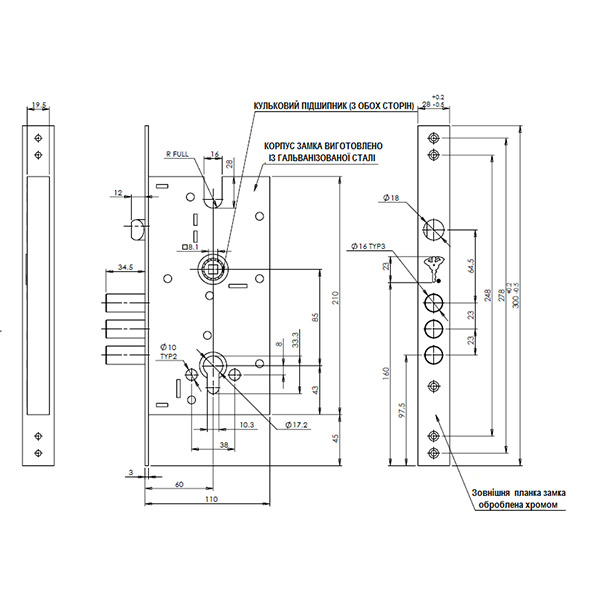 • Язичок реверсивний – замок підходить на праві та ліві двері.