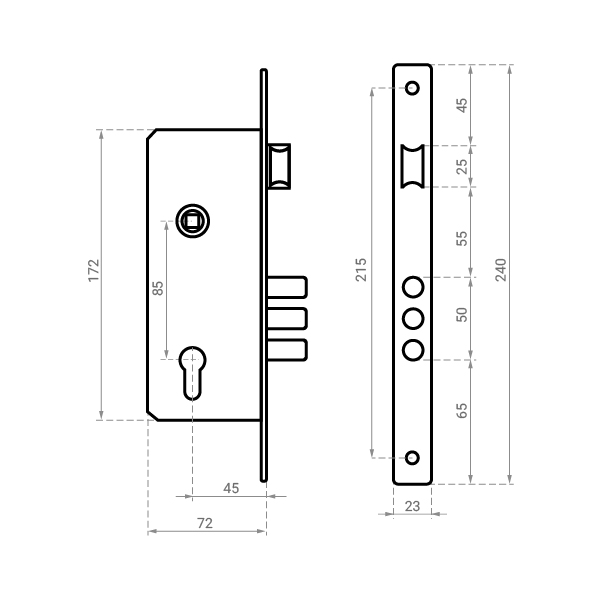 Опис Механізм замка OZEN 510 453M (BS45*85мм) чорний