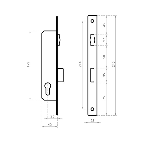 Керування замком відбувається серцевиною. Вона в комплект не входить та докуповується окремо залежно від Ваших потреб. Завдяки реверсивній “бочці” є можливість встановити замок як для ліво-, так і правосторонніх дверей.