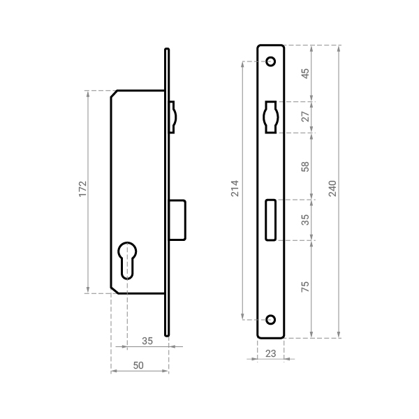 Керування замком відбувається серцевиною. Вона в комплект не входить та докуповується окремо залежно від Ваших потреб. Завдяки реверсивній “бочці” є можливість встановити замок як для ліво-, так і правосторонніх дверей.