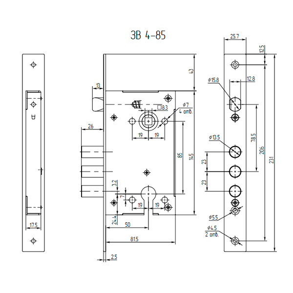 Опис Замок врізний АРІКО ЗВ4 (аналог ГАРДІАН 12.11) (BS52,5*85мм)