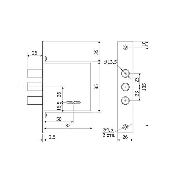 • Розміри замка – 85x85x18 мм.