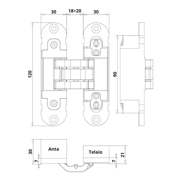 Завіси ТМ OTLAV виготовляються в Італії. Цей виробник давно відомий на ринку та має більше сотні патентів в сфері фурнітури для дверей і вікон. Відповідно його виробництво гарантує стандарти якості. Дана модель - це петля прихованого монтажу. На практиці це буквально означає, що вона захована всередину дверного полотна та не виступає за його площину. З точки зору безпеки подібне виконання є найкращим, адже такий завіс не можна вибити або спилити. OTLAV Invisacta IN305 виготовляється із цинкового сплаву ZAMAK із пластиковим корпусом та призначений для дерев’яних дверних полотен. Завдяки малій глибині врізки (21 мм) може ставитись і на алюмінієві двері. Сім опорних точок і нейлонові вставки забезпечують їхнє плавне відкривання на 180º (за відсутності лиштви). Це означає, що у повному відкритому стані двері не будуть заважати, займаючи житловий простір. Дана модель регулюється в 3-х вимірах: вертикаль, горизонталь, притиск. Таким чином, можна добитись максимальної точності та відсутності будь-яких щілин. Важливим аспектом при підборі завіс являються габарити дверей. Знаючи їх, Ви дуже просто визначитесь із кількістю необхідних петель з розрахунку того, що навантаження повинно бути не більше 40 кг на 2 петлі. OTLAV Invisacta IN305 виконаний в мінімалістичному стилі. Регулювальні гвинти приховуються спеціальними ковпачками, тому їх не видно навіть при відкритих дверях. Це все дає великий простір для цікавих дизайнерських втілень. В матовому хромованому кольорі ці завіси будуть вдалим рішенням на дверях світлих відтінків - від тепло-сірих до бежевих.