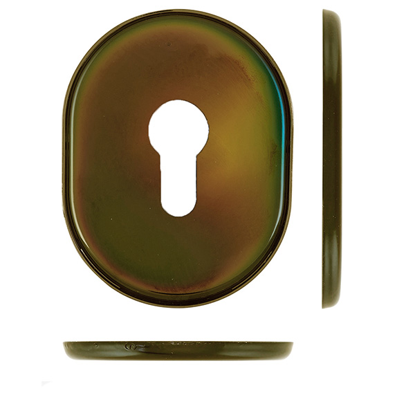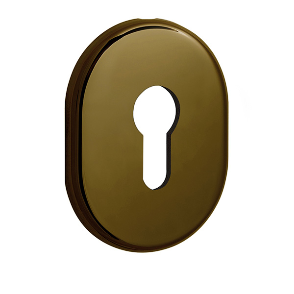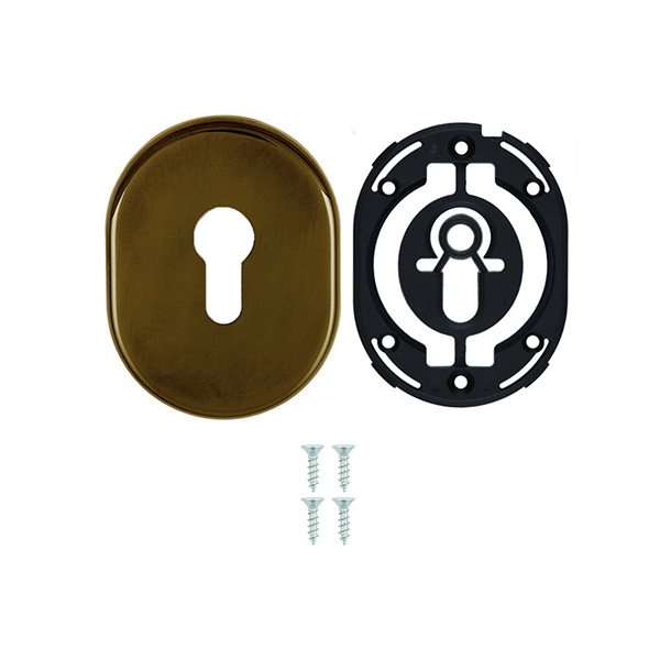 Декоративная накладка DISEC KT036 - это декоративный элемент, предназначенный для придания дверным полотнам более опрятного вида. Используется в паре с врезными броненакладками с замками и сердечником стандарта EURO DIN. Крепится с внутренней стороны двери с помощью пластика и саморезов. Накладка дает возможность скрыть монтажные отверстия, царапины и другие повреждения, которые могут появиться при установке замка и сердцевины. Изготовлена из латуни, имеет овальную форму размером 85х65 мм. В бронзовом цвете лучше будет дополнять соответствующего цвета протектор. Монтаж происходит довольно просто.