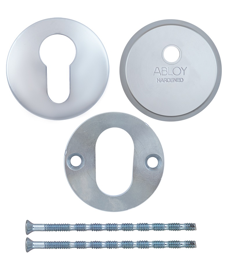 Протектор (или броненакладка) является обязательным аксессуаром входных дверей для защиты Вашего дома. Поскольку их слабой точкой является замок с сердцевиной, то очень часто преступники пытаются попасть внутрь помещения просто вырывая их. Для противодействия такому методу взлома и нужна броненакладка. Данная модель ABLOY CH101 имеет круглое ключевое отверстие и устанавливается на входную дверь вместе с сердцевиной серий ABLOY PROTEC и NOVEL. Это защитный протектор с 3-м классом взломостойкости. Изготовлен из закаленной стали. Монтируется накладным методом. Он проще, чем врезной, и не требует высверливания отверстий для посадки броненакладки. Однако в таком случае она не образует с замком монолитную конструкцию, из-за чего легче добраться до стяжных винтов и срезать их. Чашка позволяет немного утопить протектор, но все равно пространство между ним и сердцевиной остается. Само крепление осуществляется стяжными винтами М5. Длина винтов позволяет ставить броненакладку на дверные полотна толщиной от 40 до 80 мм. Таким образом, протектор защищает сердцевину от физических и силовых методов взлома - сверления и выбивания. Его высота (или толщина) составляет 16,5 мм, диаметр - 52 мм. В цвете “хром сатин” лучше будет дополнять двери светлых оттенков - от тепло-серых до бежевых.