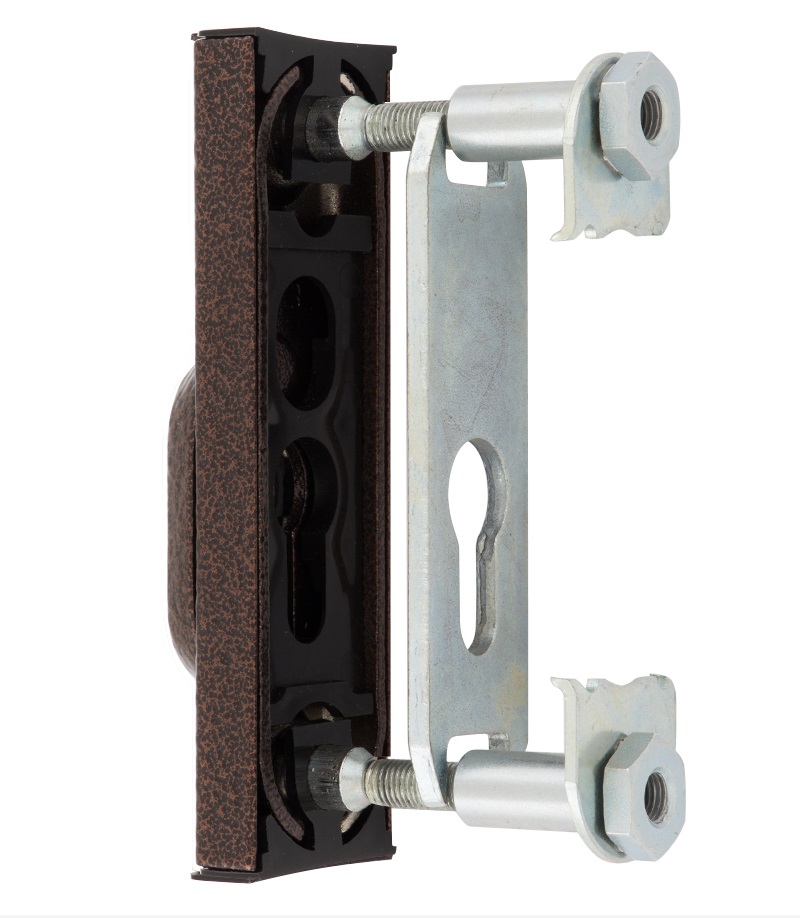 Защитная дверная фурнитура чешского производителя ROSTEX уже давно завоевала благосклонность у владельцев квартир, домов и коммерческих помещений. Обязательным аксессуаром входных дверей для защиты Вашего дома является протектор (или броненакладка). Поскольку их слабой точкой считается замок с сердцевиной, то очень часто преступники пытаются попасть внутрь помещения просто вырывая их. Для противодействия такому методу взлома и нужна броненакладка. Данная модель ROSTEX R3 устанавливается на входные металлические и деревянные двери вместе с дополнительным замком и сердцевиной стандарта EURO DIN. Это защитный протектор с 3-м классом взломостойкости. Изготовлен из нержавеющей стали, поэтому может использоваться в уличных условиях. Монтируется накладным методом. Однако крепление не стандартное горизонтальное, а вертикальное. Это требует меньшего по размеру дополнительного замка для того, чтобы закрутить через него стяжные винты М8. Их длина позволяет ставить броненакладку на дверные полотна толщиной от 38 до 55 мм. Есть дополнительная возможность продления до 100 мм. Эти цифры указаны с учетом того, что винты закручены на всю длину крепежного отверстия. Таким образом, протектор защищает сердцевину от физических и силовых методов взлома - сверления и выбивания. Особенностью этой модели является наличие внутри усиленной стальной пластины, которая создает дополнительную защиту корпуса замка. При этом тонкий корпус позволяет монтировать данную броненакладку на дополнительные замки с бексетом от 30 мм. Высота (или толщина) протектора составляет 22 мм. В цвете "коричневый антик" подойдет для дверей без особых требований к дизайну, то есть относительно универсальным.