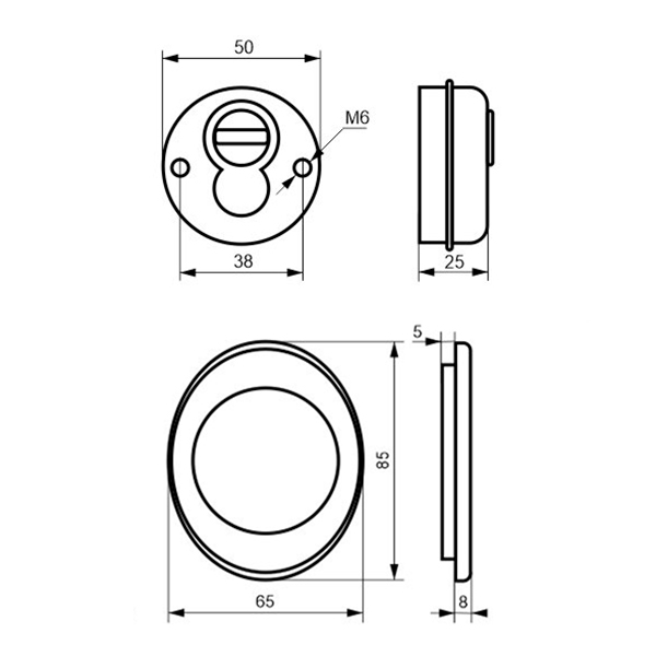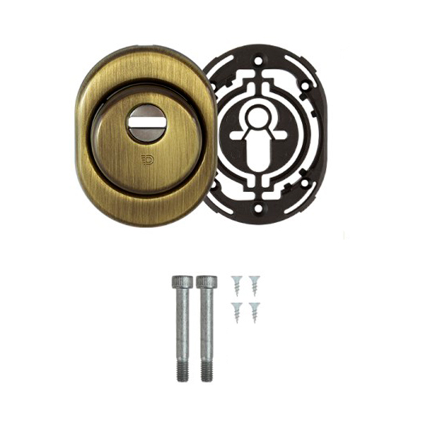 Монтируется врезным методом: по её диаметру делается отверстие в дверном полотне. Крепится вокруг сердцевины стяжными винтами М6 (выдерживают до 4200 кг), создавая монолитную конструкцию с ней. Таким образом, протектор защищает ее вместе с точкой крепления в дверях от физических и силовых методов взлома - сверления, взлома и выбивания. Для дополнительной защиты от сверления в отверстия крепления устанавливаются закаленные шарики. Они докупаются отдельно. Доступа к винтам крепления нет и сорвать саму броненакладку чрезвычайно сложно. Высота (или толщина) протектора составляет 25 мм, диаметр - 50 мм. В бронзовом цвете лучше будет дополнять двери с пыльно-землистой палитры.