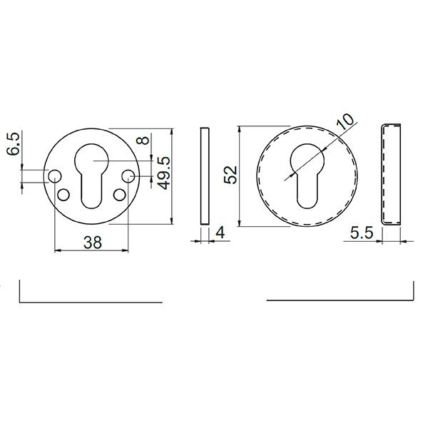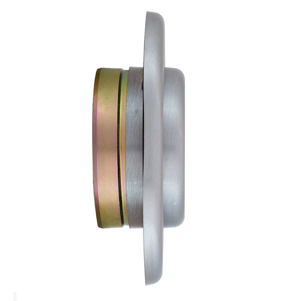 Высота (или толщина) протектора составляет 25 мм, диаметр – 50 мм. В цвете "нержавеющая сталь матовая" лучше всего будет дополнять двери соответствующих оттенков. Комплектуется декоративной внутренней накладкой DISEC КТ038.