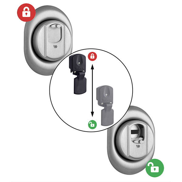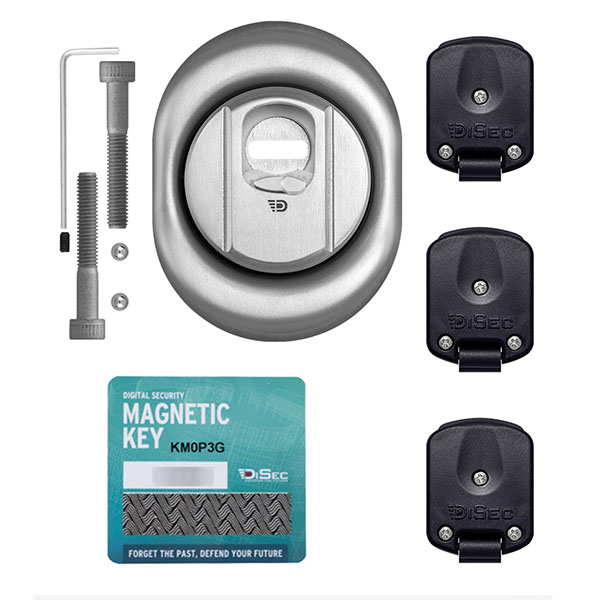 Данная модель DISEC 4GN2MB устанавливается на входную дверь вместе с замками (основными и дополнительными) с сердцевинами стандарта EURO DIN. Ее особенностью является наличие магнитного ключа. Это дополнительная защита ключевого отверстия от подбора отмычек, вандализма и попадания посторонних предметов. Он открывает доступ к цилиндру: после того, как Вы вставили его, нужно провести вниз вместе с защитной шторкой. Протектор содержит 4 магнита, что усиливает его секретность и надежнее защищает от взлома. DISEC 4GN2MB изготовлен из нержавеющей стали. Это позволяет использовать его при уличных условиях.