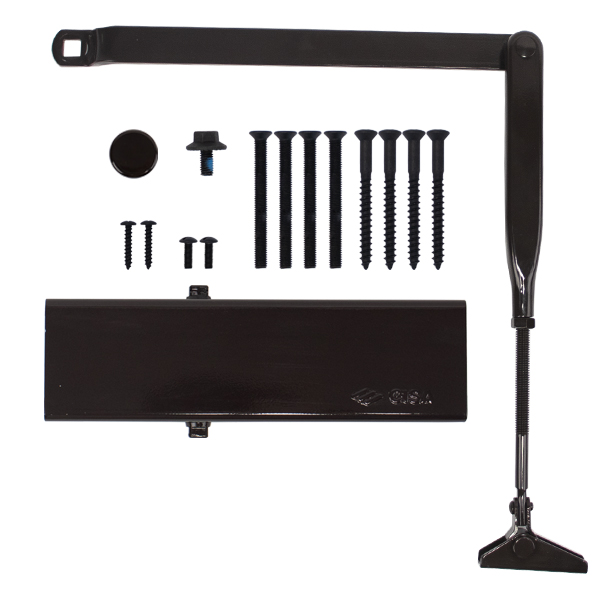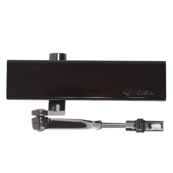 В данной модели сила закрывания EN 2-4 регулируется изменением положения корпуса доводчика и тяги. В комплектации есть стандартная тяга без фиксации дверного полотна в открытом положении. Однако данный доводчик сертифицирован для использования с противопожарной дверью.
