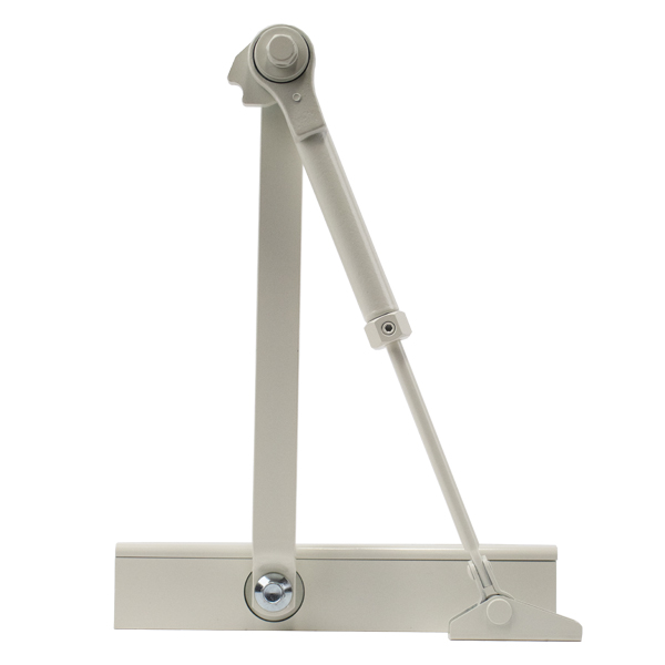 Сила закрывания регулируется изменением положения корпуса доводчика и тяги.
