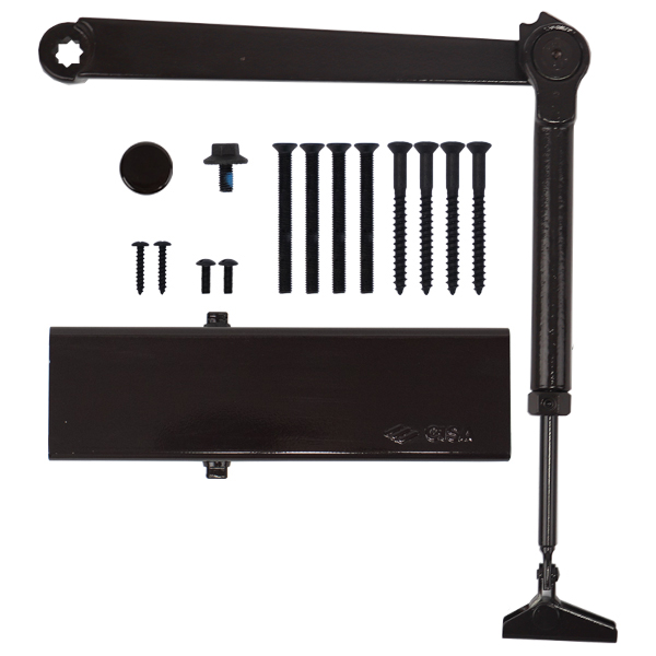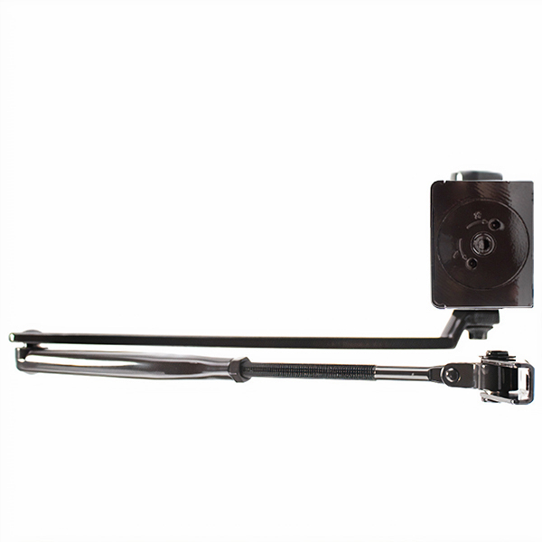 Также в данной модели сила закрывания EN 2-6 регулируется вращением винта на боковой части корпуса. В данной комплектации присутствует стандартная тяга с фиксацией дверного полотна в открытом положении до 130°. Это дает возможность оставить дверь открытой для проветривания или удобства пользования в коммерческих помещениях.