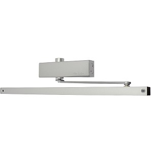 В комплектации присутствует скользящая тяга без фиксации дверного полотна в открытом положении. Однако данный доводчик сертифицирован для использования с противопожарной дверью.