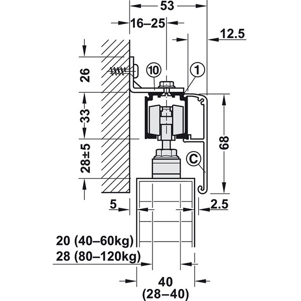 Описание Раздвижная система SLIDO Classic 120-P 2 г на 1 полотно весом до 120 кг с двусторонним амортизатором